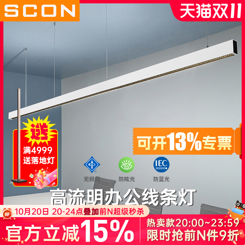 SCON办公灯led长条灯方通无缝拼接条形灯会议室工位灯办公室吊灯