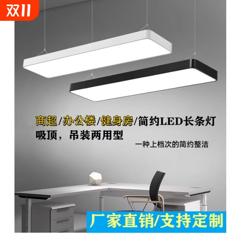 LED长条灯办公室吊灯方通吊线吸顶灯简约现代超亮店铺商用灯具