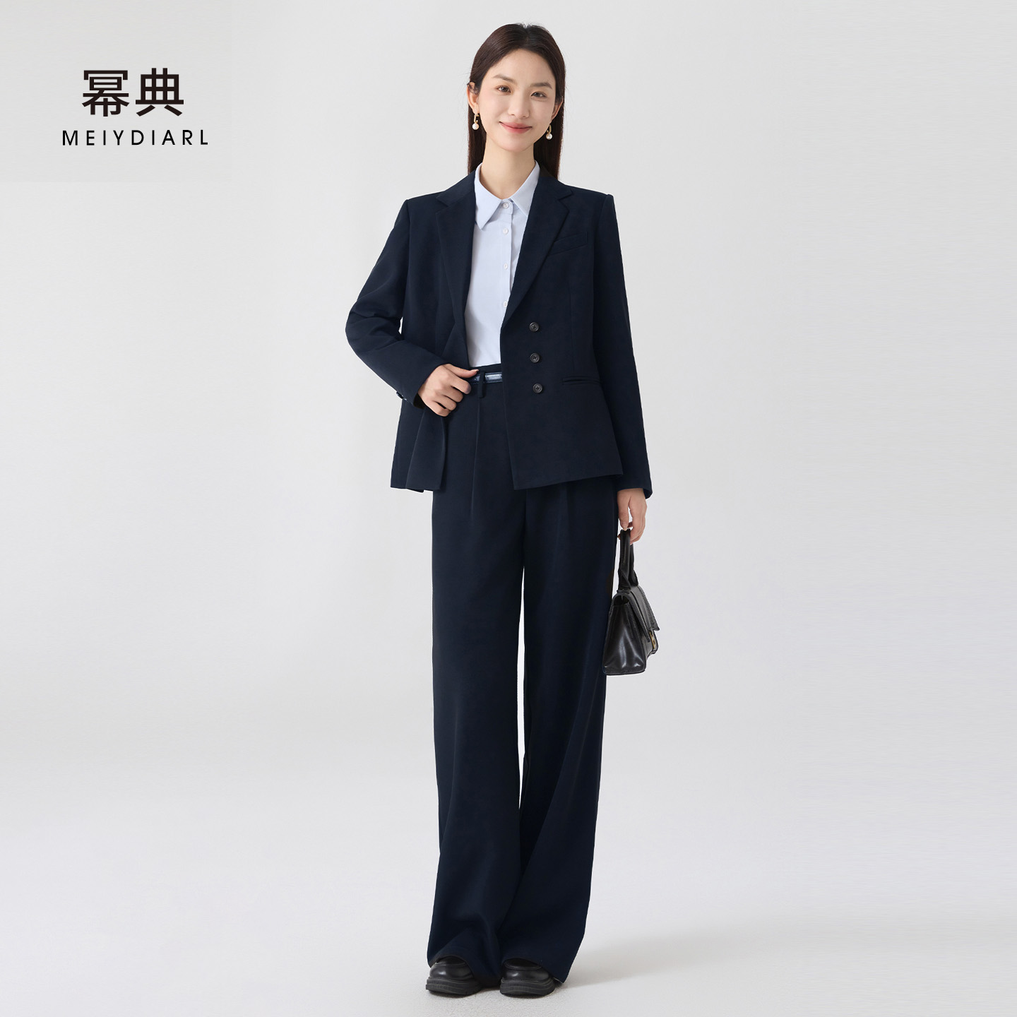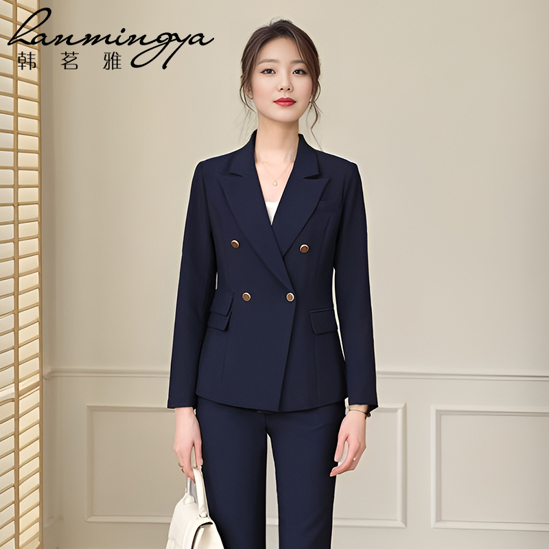 韩茗雅职业西装套装女士初春秋新款藏青色免烫高级感面试正装西服