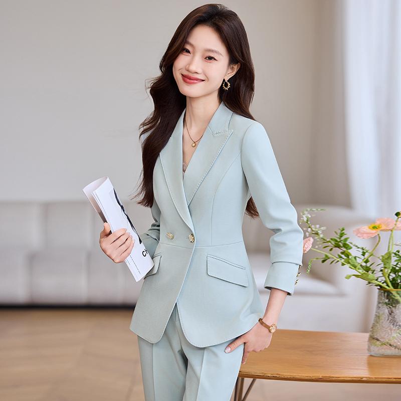 浅蓝色高端职业西装套装女春秋冬女士西服休闲大码正装气质女神范