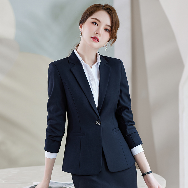 幂典藏青色西装外套女士2025春秋通勤职业商务正装团体工作服套装
