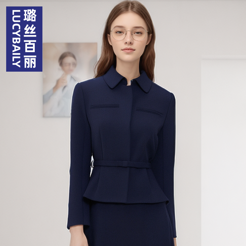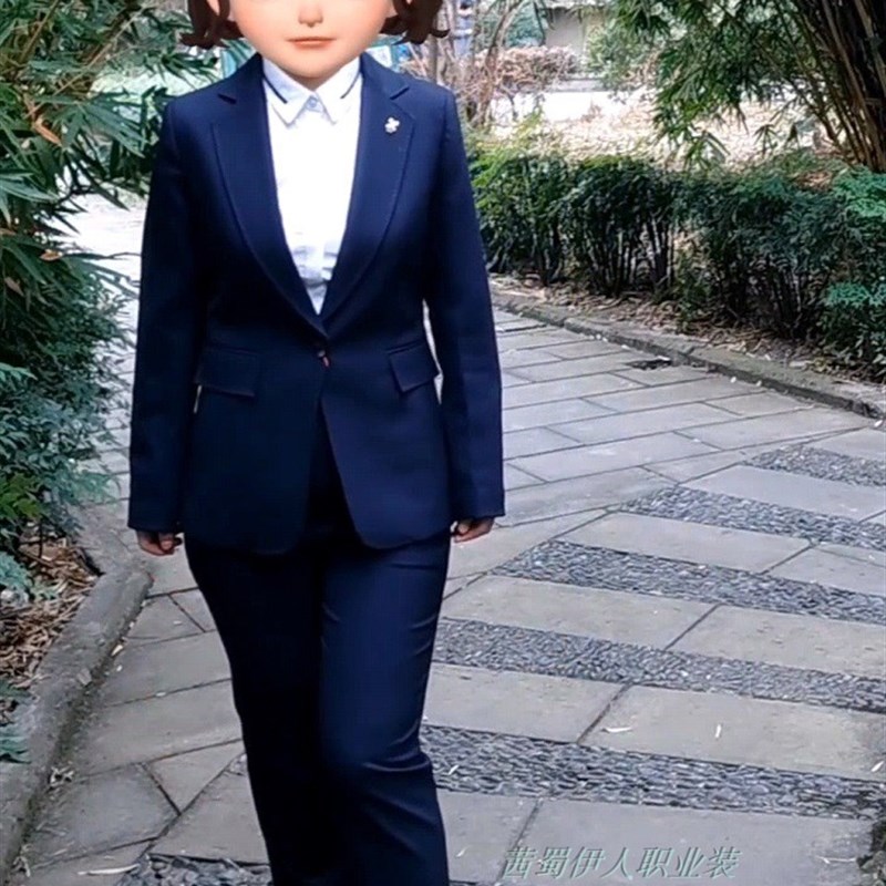 女士职业装藏蓝色时尚套装修身西装春秋微弹气质正装工装西服郑州