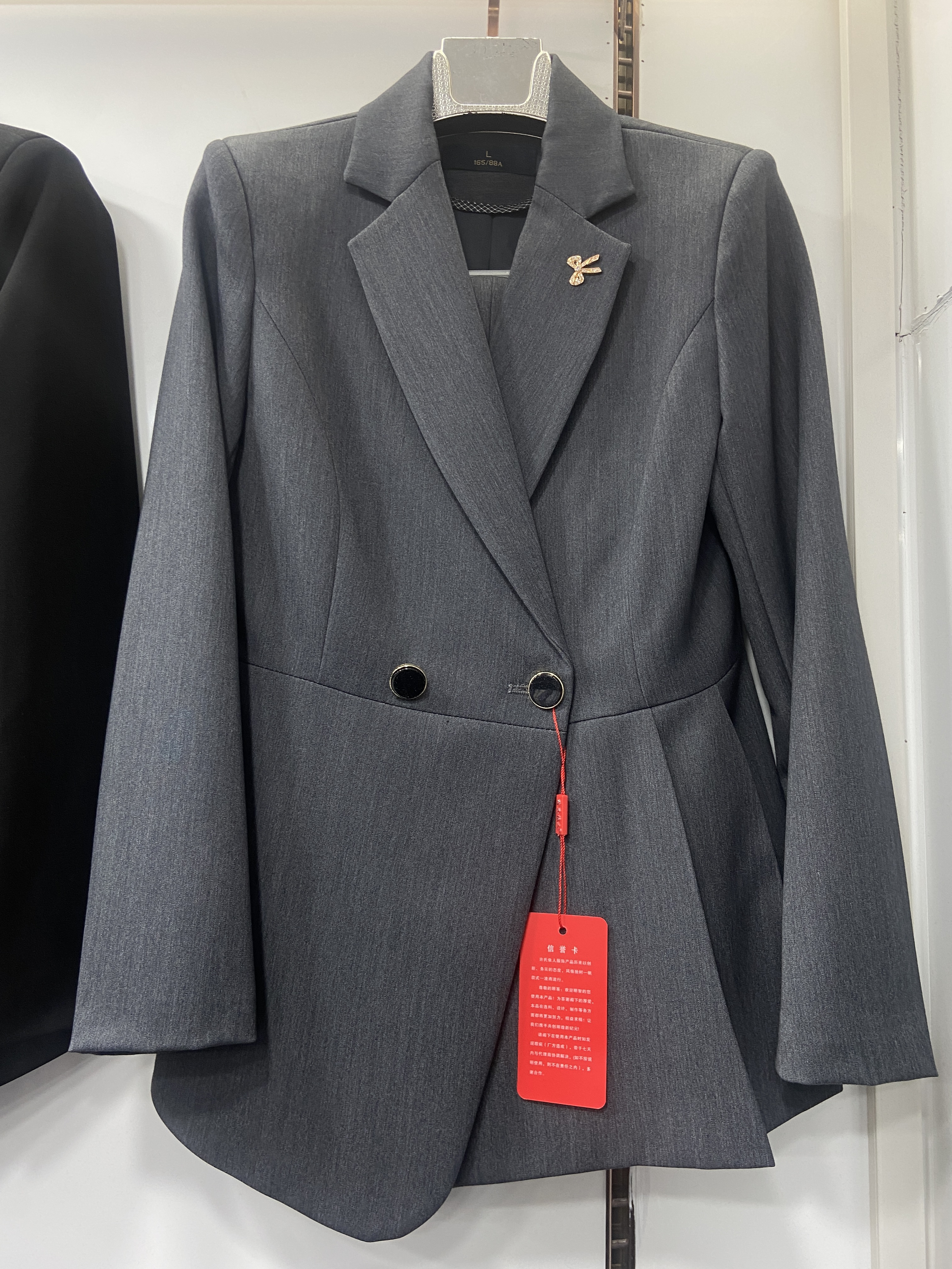 灰色高端职业装双排扣女士西装修身套装春秋时尚气质正装工装西服
