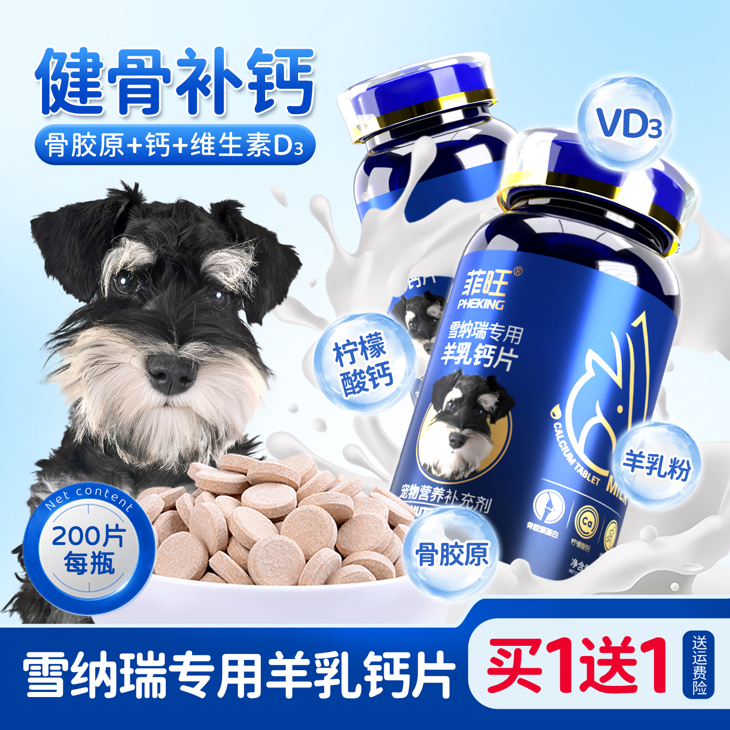 雪纳瑞专用钙片狗狗幼犬补钙腿瘸关节软骨素宠物小狗吃营养品零食