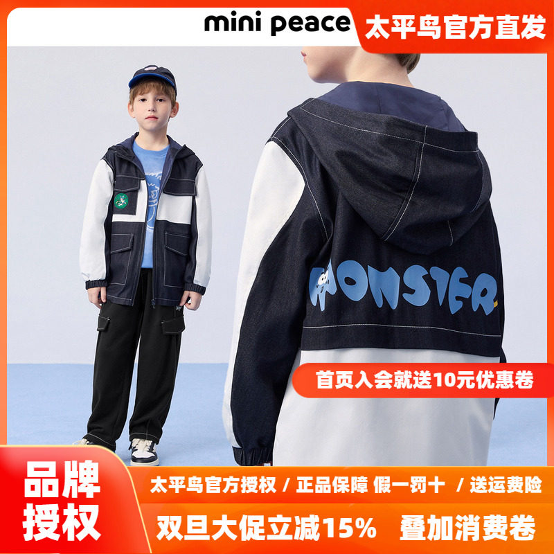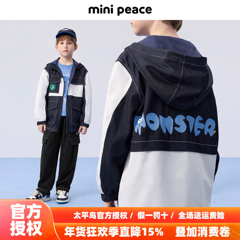 MINIPEACE太平鸟童装男童春装外套牛仔拼接风衣夹克上衣洋气新款