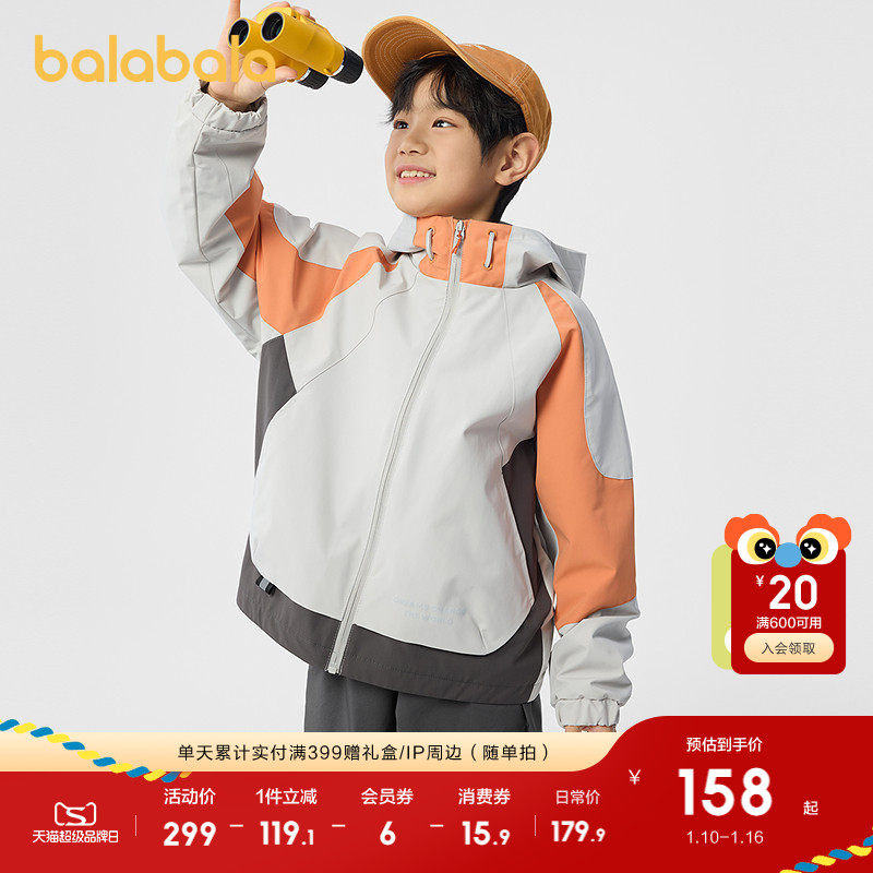 巴拉巴拉童装男童外套儿童上衣春装防泼水透湿软壳衣时尚拼色潮酷