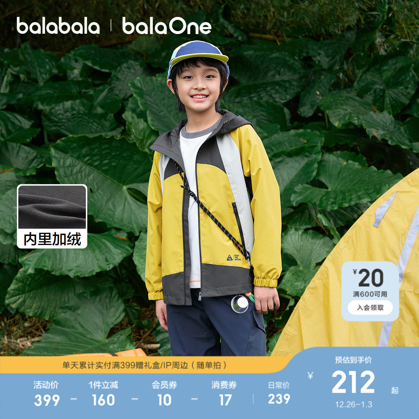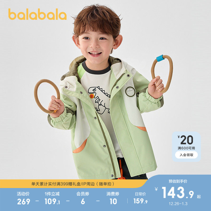巴拉巴拉童装男童外套儿童上衣2026新款春装加绒防风防泼水透湿潮