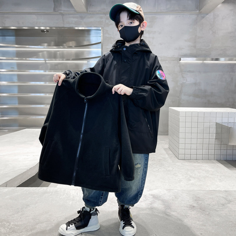 儿童装男童春装外套2026新款大童冲锋衣春秋冬款三合一可拆卸男孩