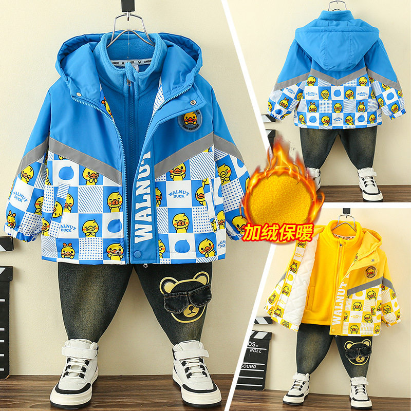 小黄鸭童装男童春装外套2024新款春秋款儿童春季薄款三合一冲锋衣