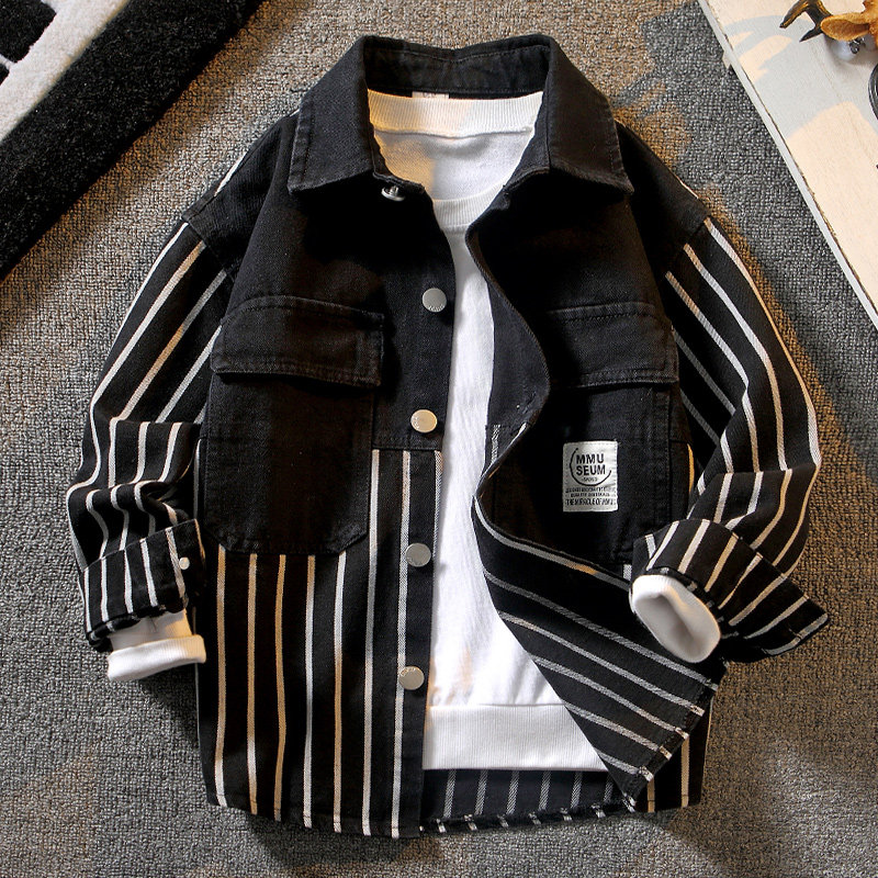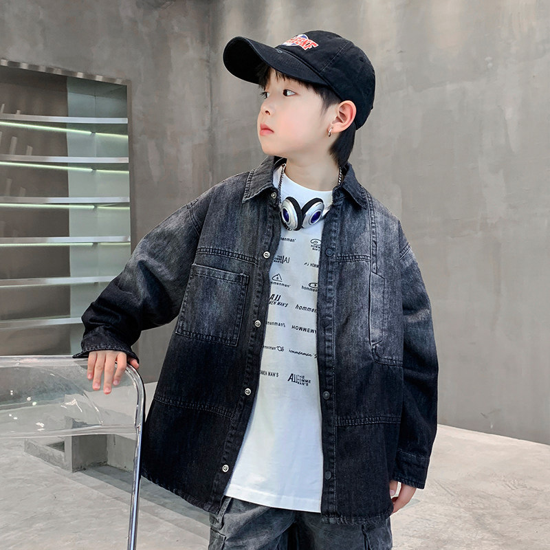 法国童装男童春装外套2025大童酷帅牛仔上衣服男孩春秋款儿童衬衫