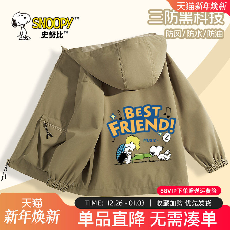 史努比童装男童春装外套2025新款春秋款男孩秋季夹克儿童冲锋衣薄