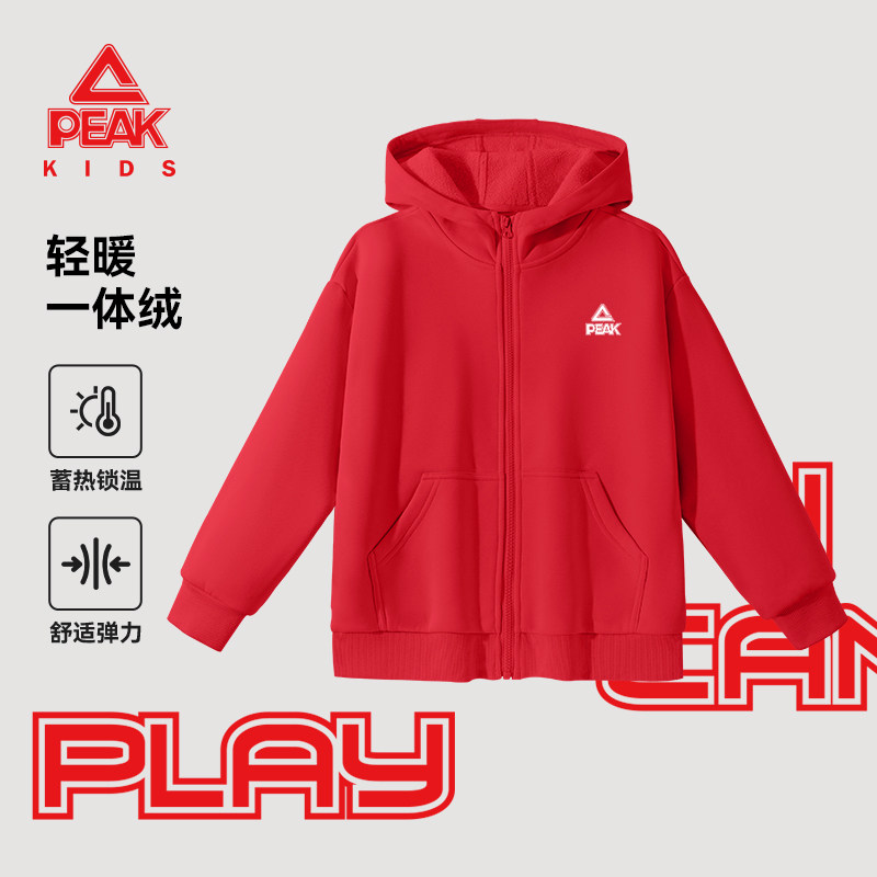 匹克童装男童春装外套儿童春秋款运动服2026新款女孩红色卫衣春季