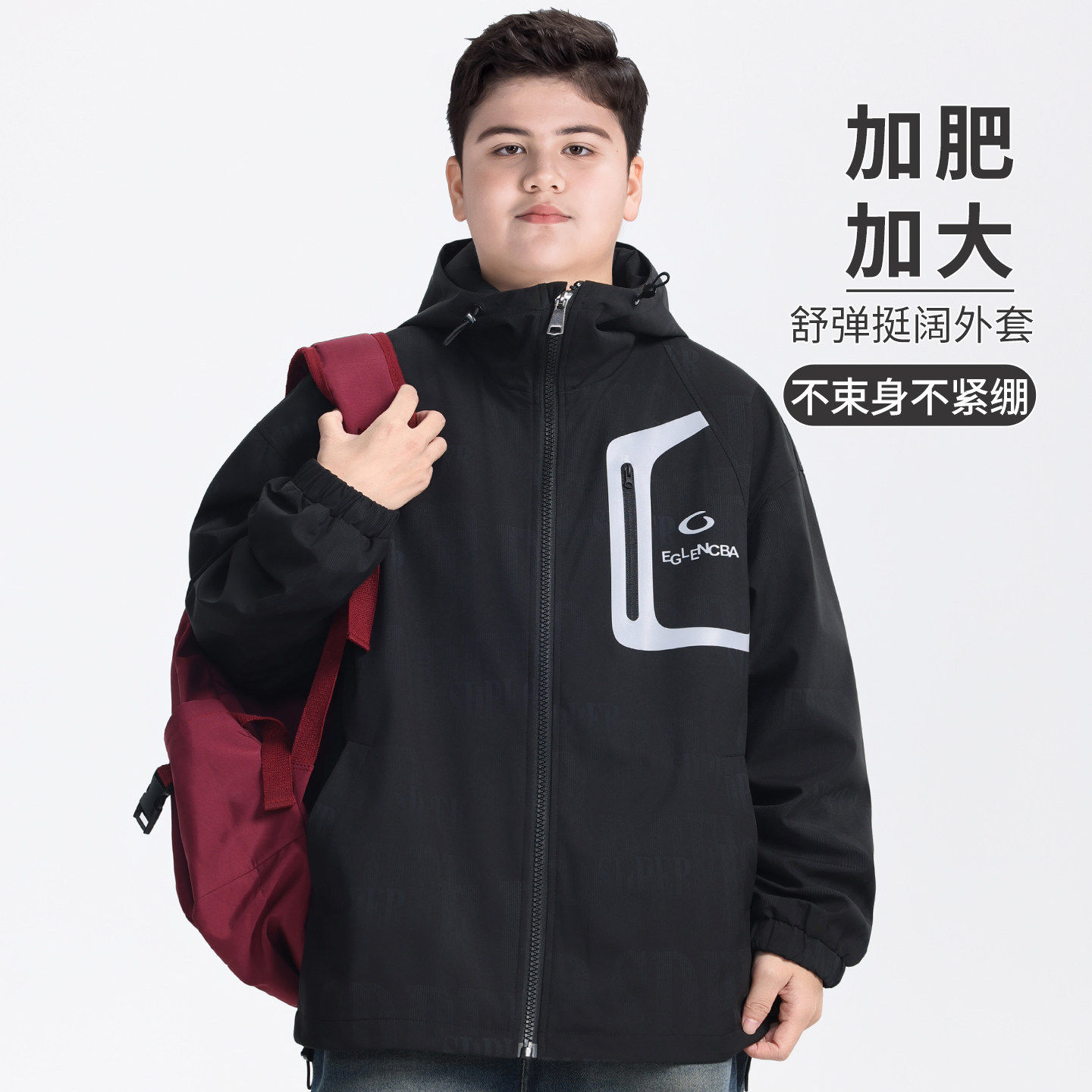 胖童装男童春装外套加肥加大中大童冲锋衣青少年儿童宽松男孩上衣