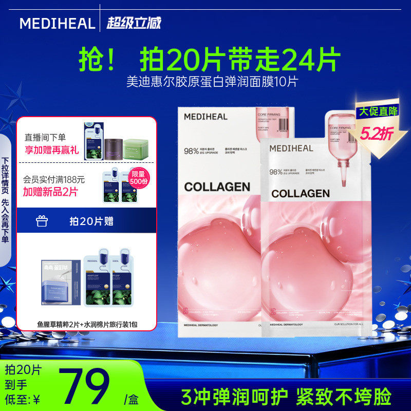 秋瓷炫同款!韩国mediheal美迪惠尔微针面膜胶原蛋白oliveyoung