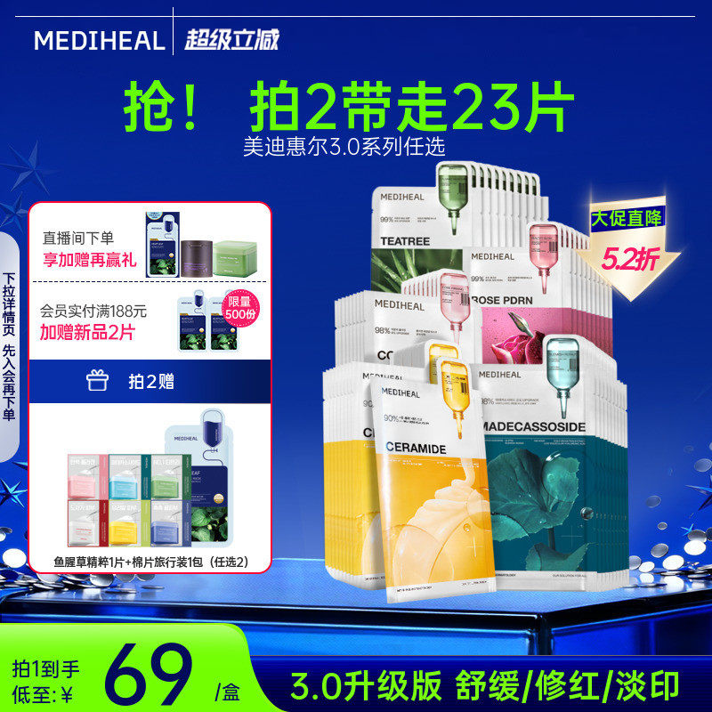 韩国3.0!mediheal美迪惠尔面膜补水积雪草修复胶原蛋白oliveyoung