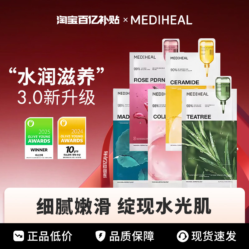 韩国MEDIHEAL美迪惠尔面膜积雪草补水茶树玻尿酸胶原蛋白舒缓提亮