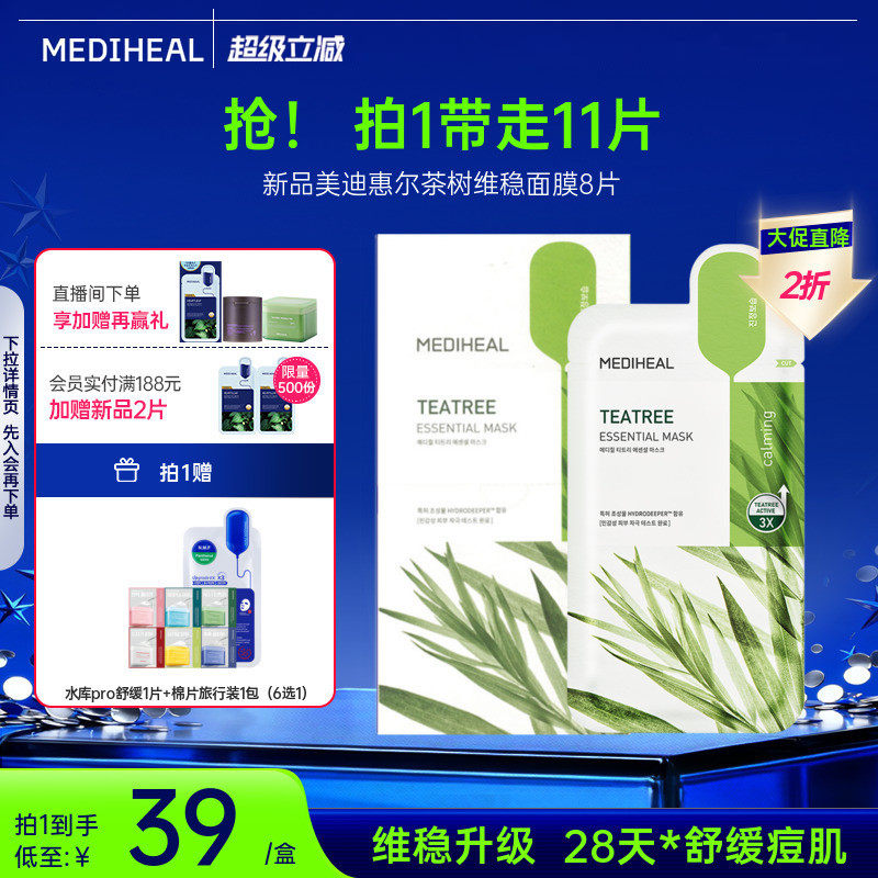 MEDIHEAL美迪惠尔面膜新款积雪草茶树胶原蛋白舒缓提亮滋养水润女