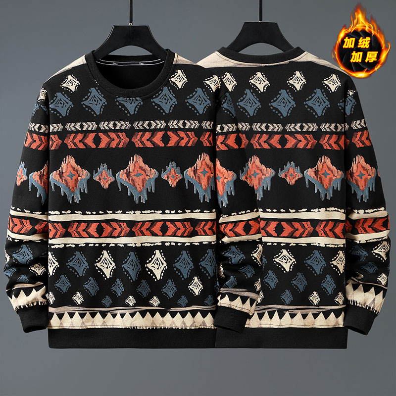 半墨大码男装德绒T恤男士宽松保暖圆领加肥加大胖子打底衫秋冬季