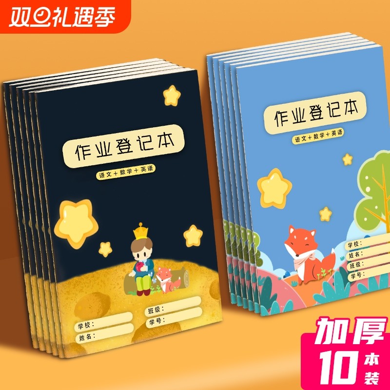 家庭作业登记本记作业小本子小学生记录本家校联系本可爱一年级二年级三四年级回家抄作业专用加厚记事笔记本