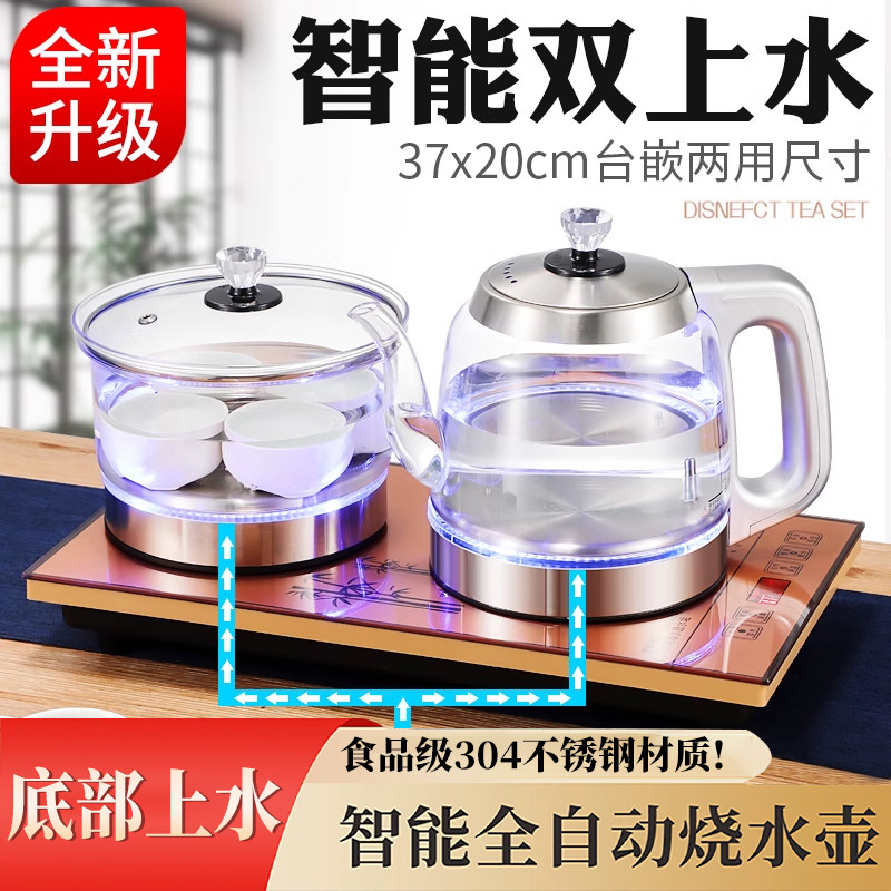 家用喝茶全自动玻璃底部上水烧水壶泡茶台一体大茶盘整套茶具套装