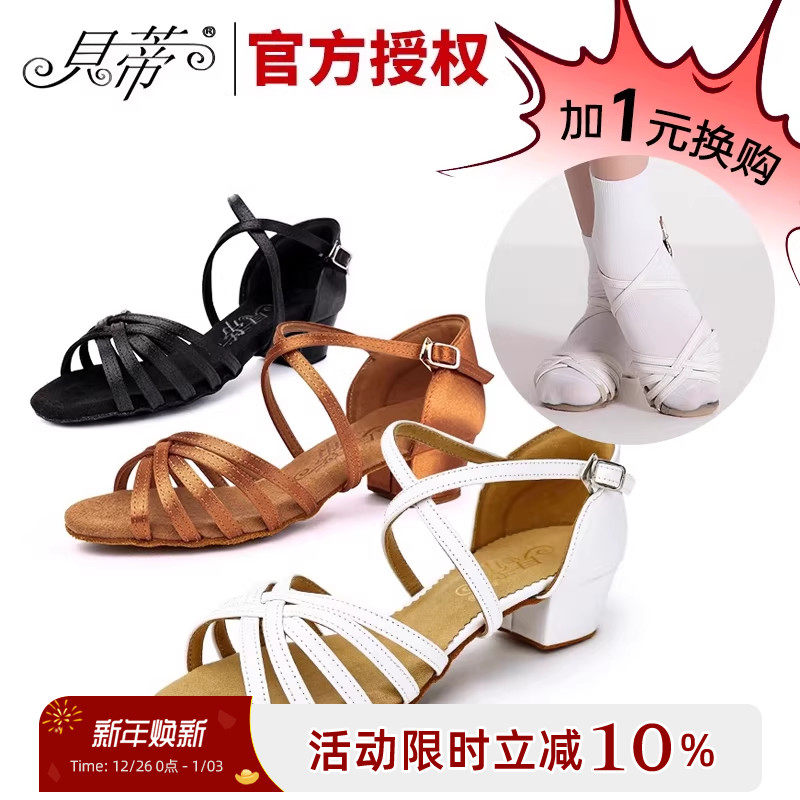 贝蒂拉丁舞鞋女童正品初学拉丁舞蹈鞋女孩白色专业考级舞鞋BD603