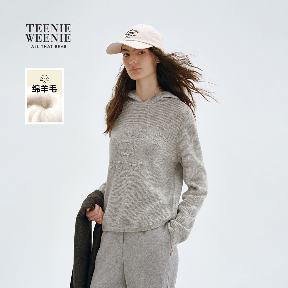 TeenieWeenie小熊女装毛衣针织衫秋冬季简约宽松舒适连帽套头衫