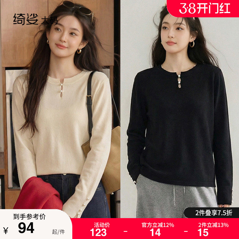 绮娑大码女装套头长袖上衣秋冬新款气质胖MM宽松显瘦毛衣打底衫女