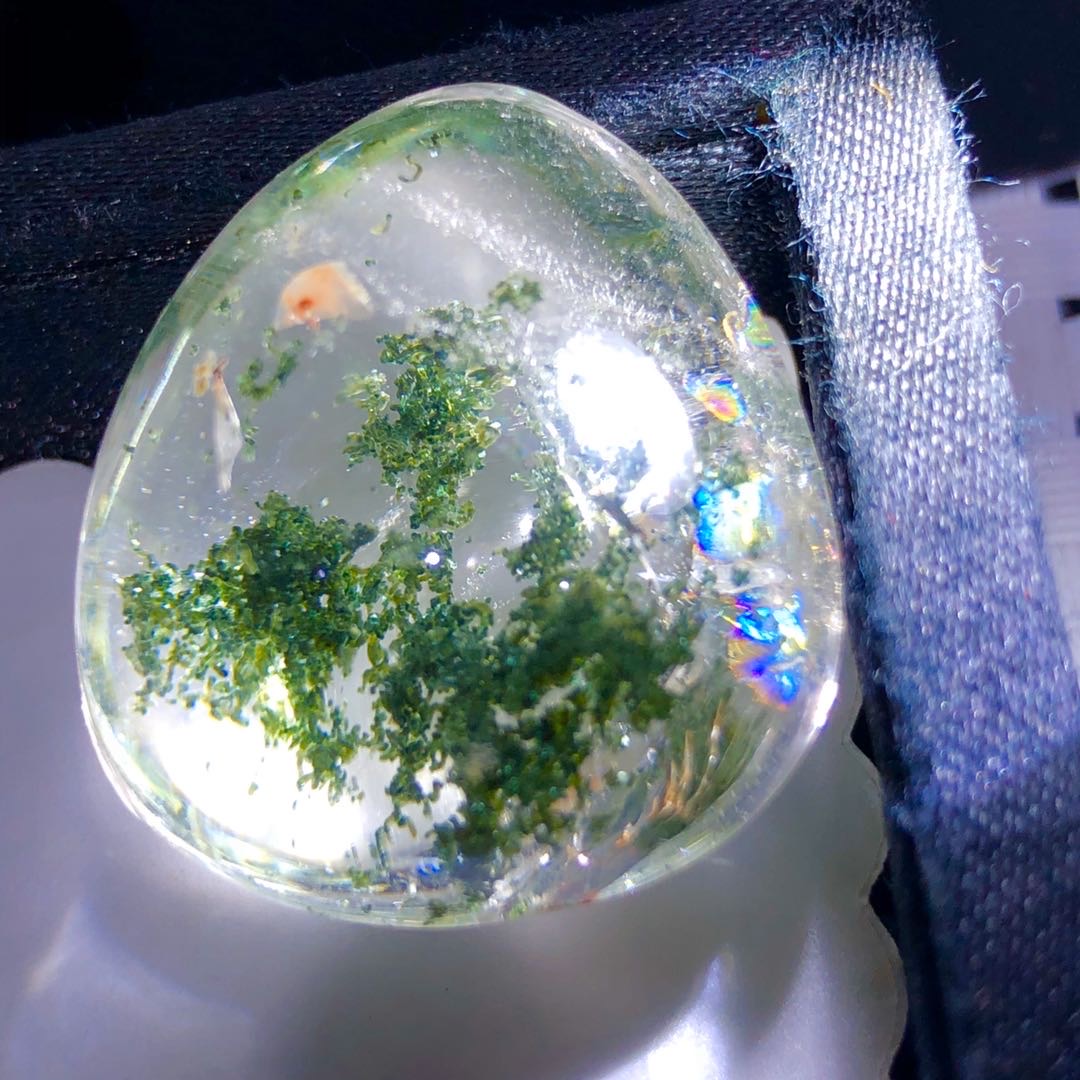 椭圆形天然彩幽灵绿红幽灵戒面裸石镶嵌绕线戒指吊坠一物一图发货