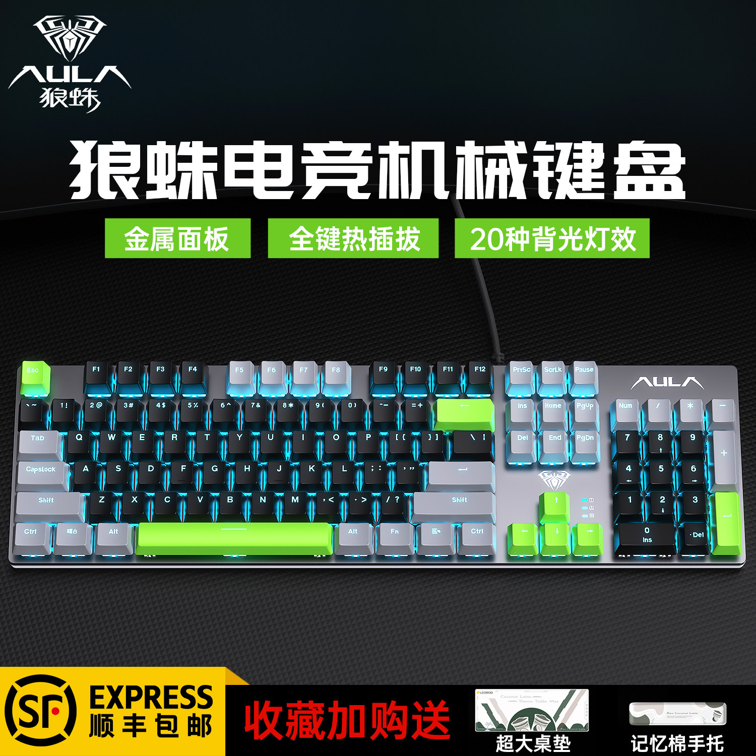 狼蛛F2088机械键盘有线鼠标套装108键电竞游戏专用电脑青红茶黑轴