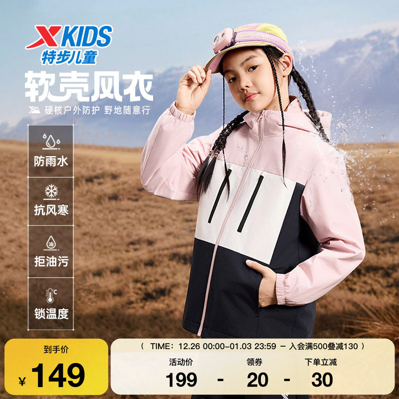 特步童装秋冬新款女童保暖防风休闲风衣儿童运动亲肤柔软学生外套
