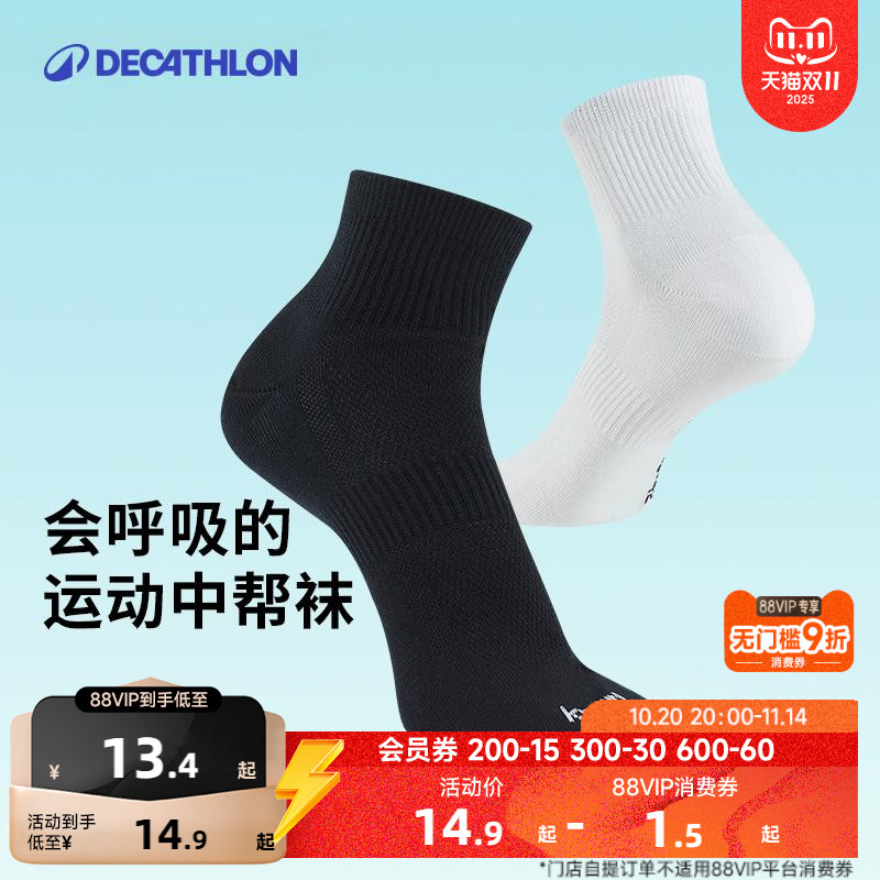 迪卡侬运动袜男女中筒袜专业篮球短袜健身训练马拉松跑步袜子OVA1