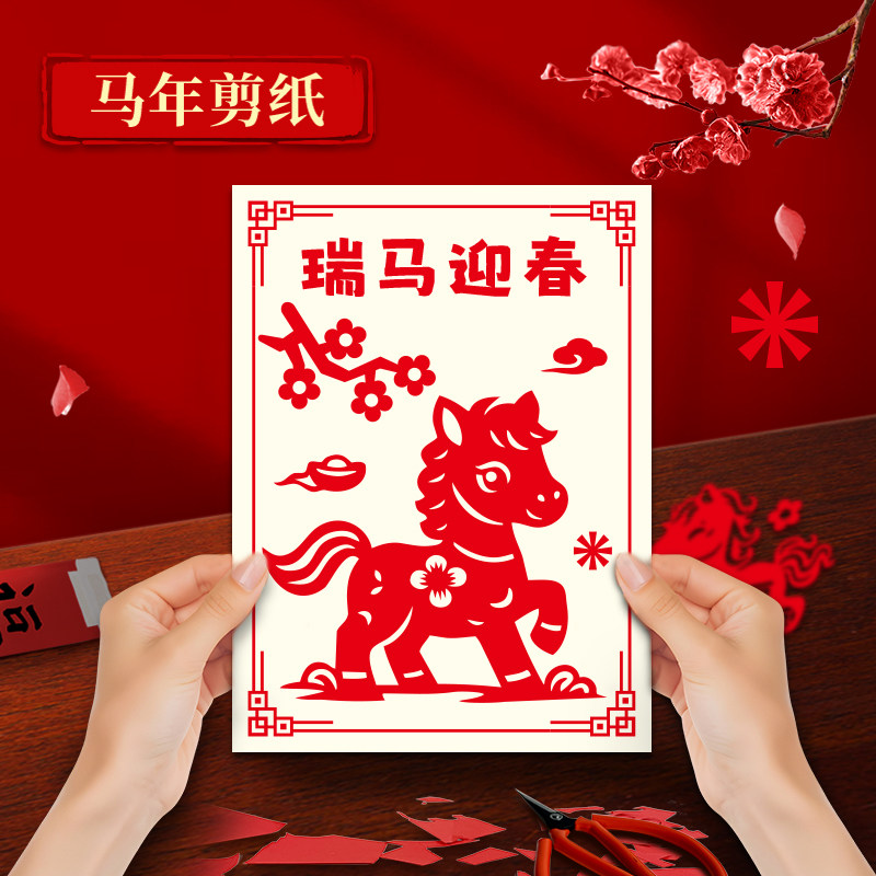 2026年马年剪纸儿童手工图案底稿剪窗花纸剪纸福字中国风春节折纸专用纸新年手工diy制作材料包幼儿园半成品