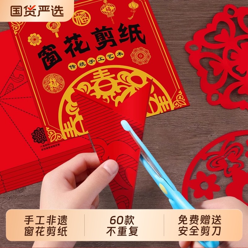 新年窗花剪纸儿童手工幼儿园3岁2宝宝福字玩具专注力折纸剪刀安全
