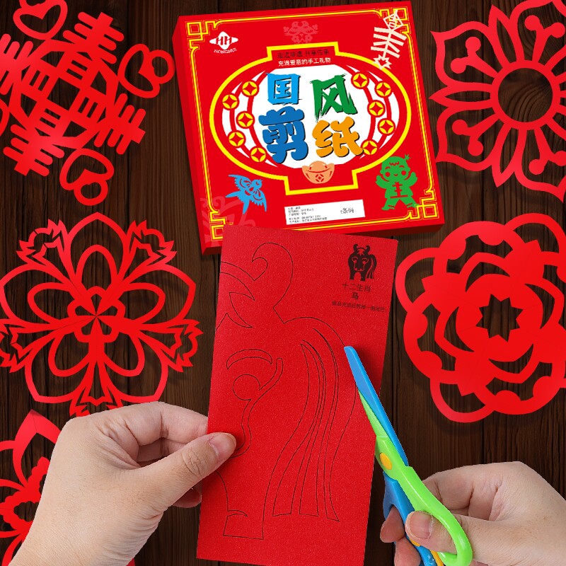 新年窗花剪纸儿童手工幼儿园diy图案大全专用纸张红纸福字小学生创意马年春花传统春节趣味套装作品半成品6岁