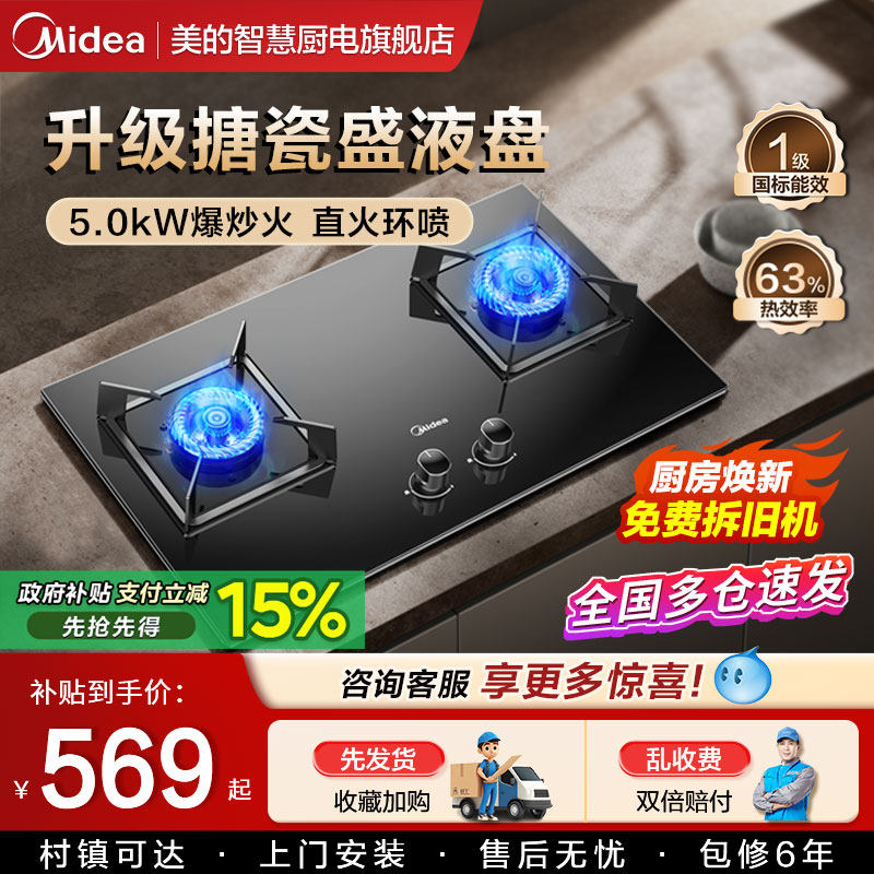 美的燃气灶天然气双灶家用台式液化煤气台嵌入式两用官方旗舰店炉