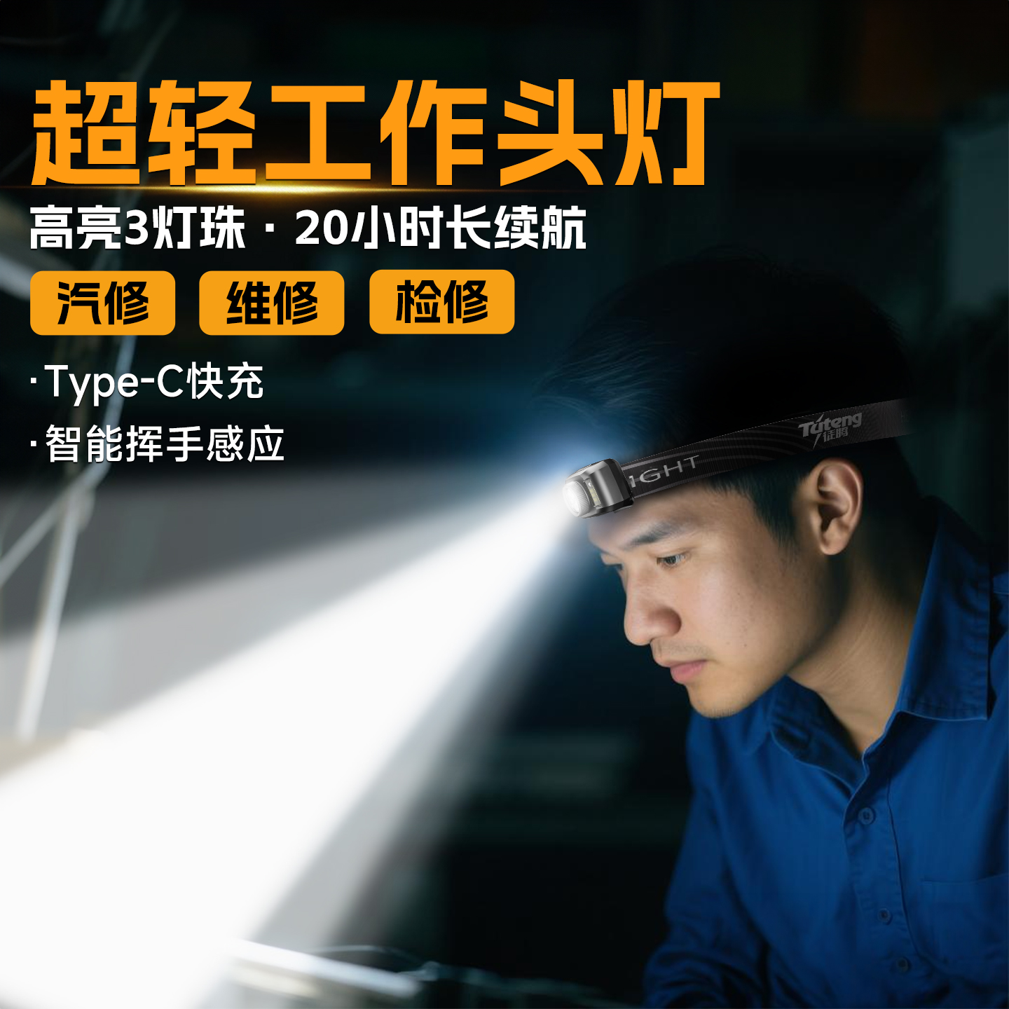 新款感应头灯汽修维修工作专用大泛光工地长续航户外头戴式照明灯