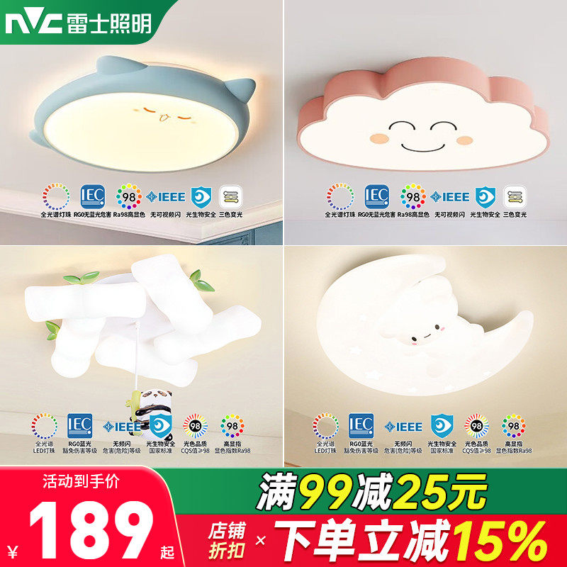 雷士照明儿童房灯卧室方形圆形吸顶遥控灯女生男生萌趣卡通led灯