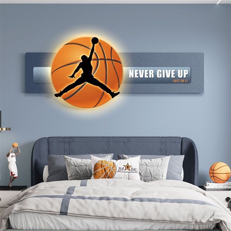 大男生卧室床头装饰画篮球青少年led发光壁灯画儿童房间女孩挂画