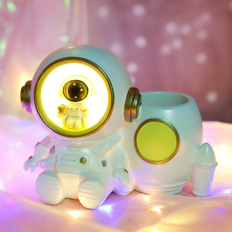 宇航员小夜灯创意笔筒儿童房间书桌摆件男孩男生男童多功能装饰品