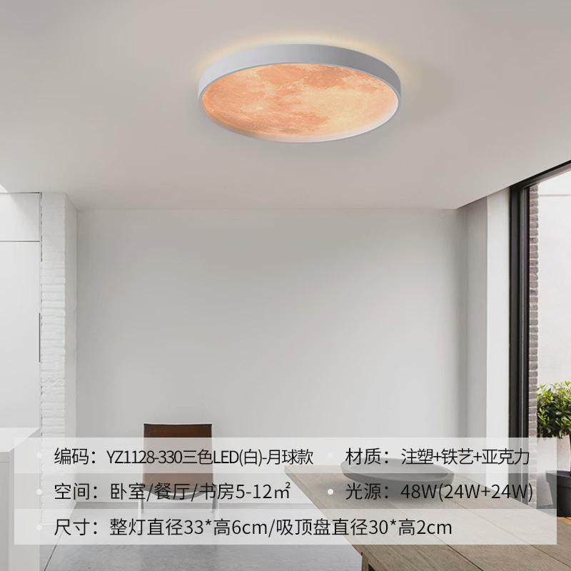 超薄月球吸顶灯圆形卧室灯简约现代北欧灯具创意男生女生儿童房灯