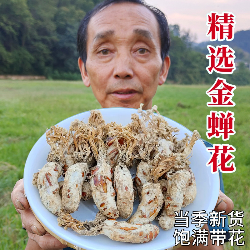 正宗金蝉花大别山竹海金禅花虫草深山野外生金婵花知了花煲汤药材