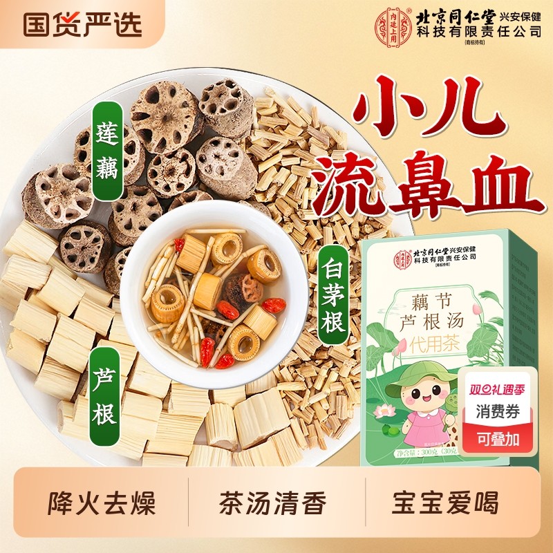 藕节芦根汤白茅根煮水小儿流鼻血北京同仁堂茶包下火降燥煲汤药材