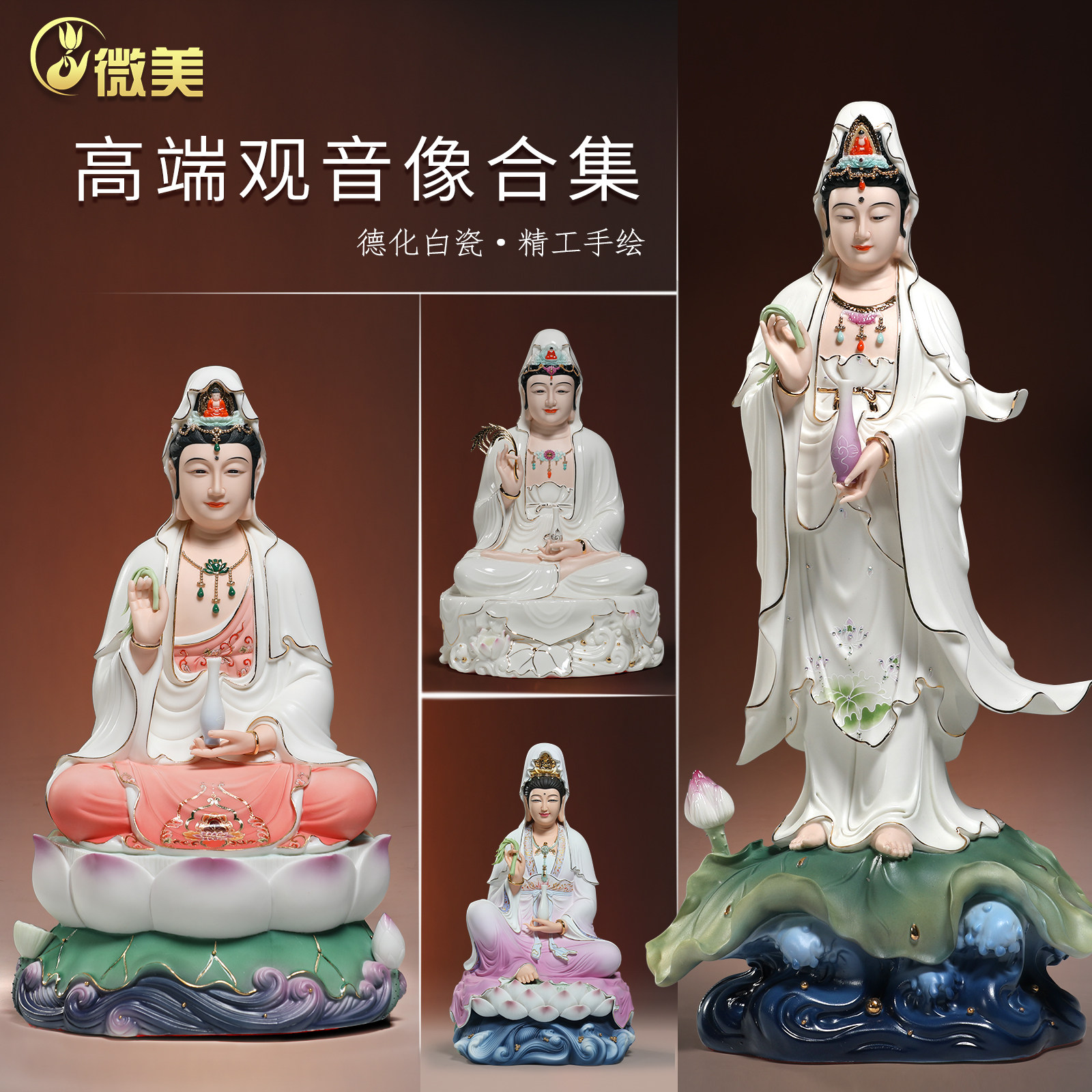 微美 德化瓷精工手绘观音像高档家用供奉观世音菩萨佛像陶瓷摆件
