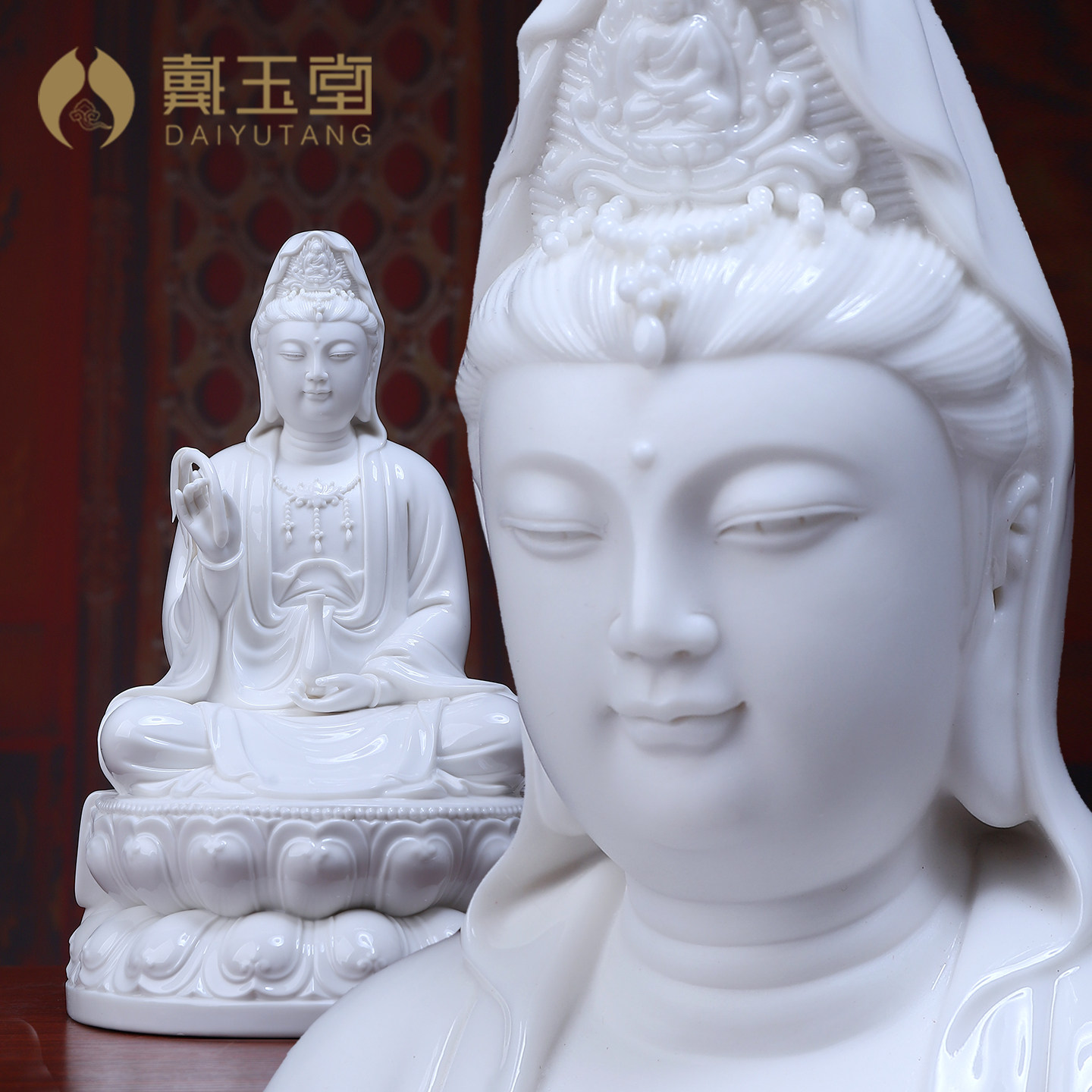 戴玉堂德化白瓷坐莲观音菩萨佛像家用供奉陶瓷家里观世音菩萨摆件