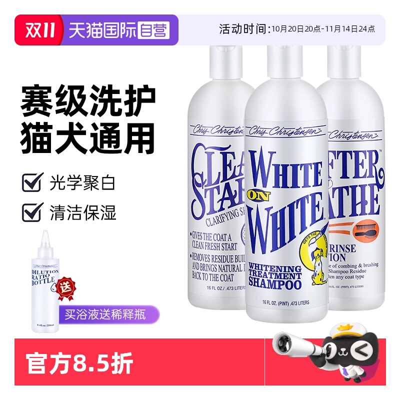 克莉斯克里斯汀森宠物沐浴露473ml猫咪狗洗澡香波浴液白又白开喜