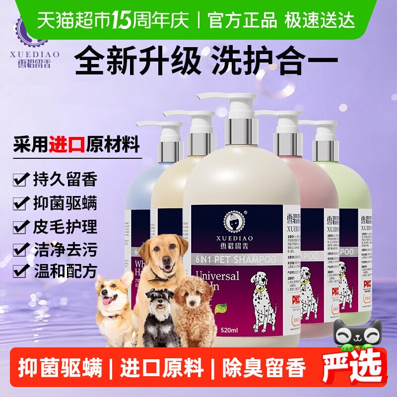 雪貂留香四合一升级抑菌驱螨狗狗犬专用洗澡沐浴露除臭香波大容量