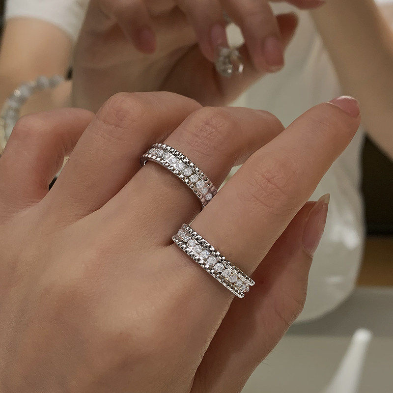 欧美满天星满钻戒指女冷淡风轻奢高级小众设计白金素圈排钻食指环