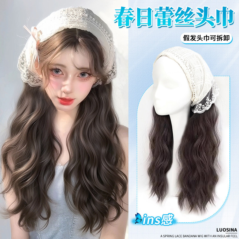 三角巾发箍假发女帽子头发一体夏天全头套自然仿真发波纹卷半头套