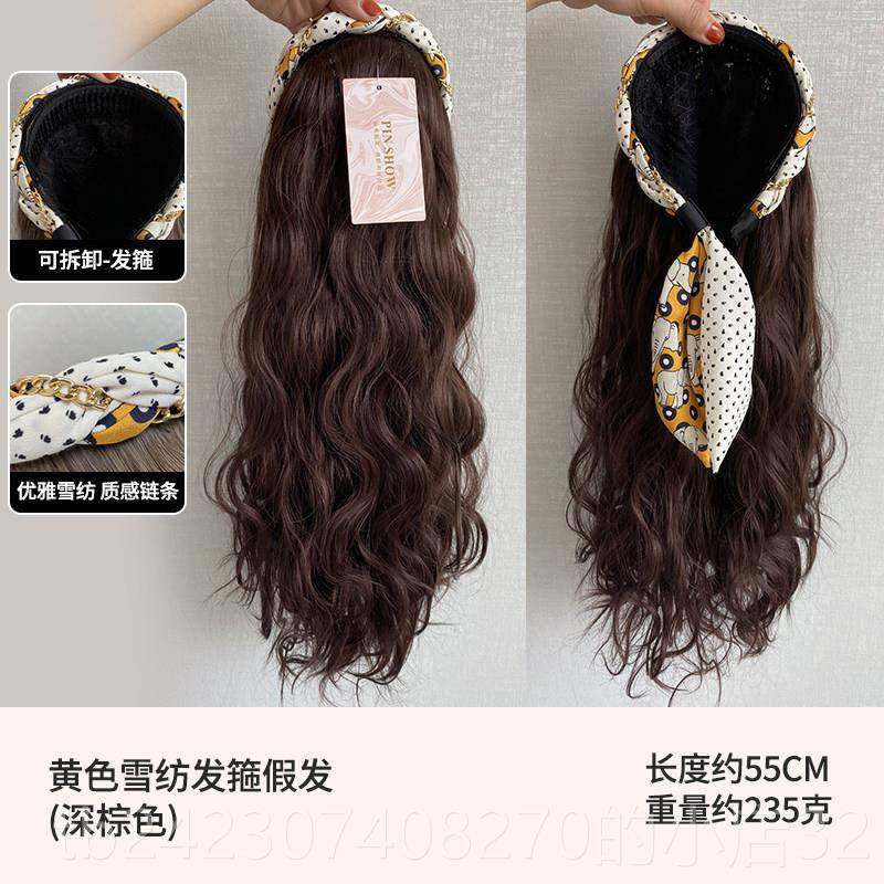 发箍假发一体长卷发半全头套女高颅顶帽子仿真发时尚水波纹秋冬款