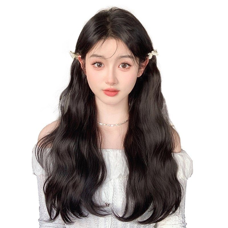 精灵耳双马尾假发卷发束女半扎蝴蝶结抓夹增发量假辫子公主头发饰
